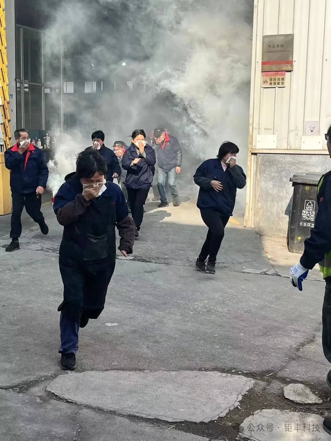 √ Jeśli podczas ewakuacji Twoje ciało płonie, pamiętaj, aby nie biegać i natychmiast zdjąć płonącą odzież. Cały proces ewakuacji ćwiczenia był napięty i uporządkowany, a pracownicy warsztatów każdego działu milcząco współpracowali, aby zakończyć bezpieczną ewakuację wszystkich pracowników. W trakcie ewakuacji nie doszło do żadnych wypadków typu popychanie czy deptanie.