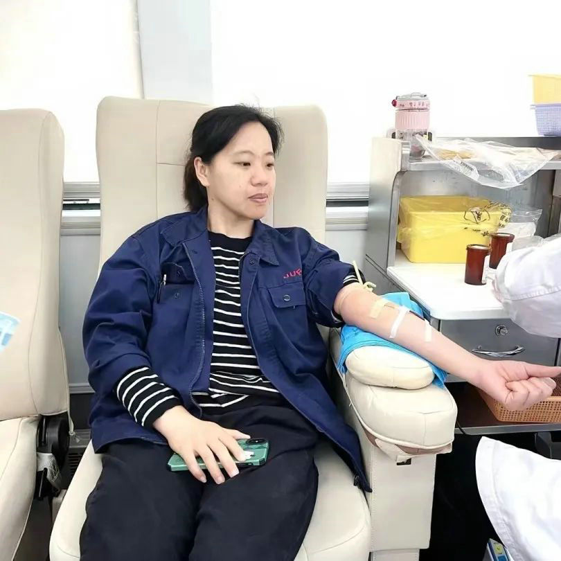 W odpowiedzi na wezwanie do dobrowolnego oddawania krwi Jufeng zorganizował 30 kwietnia pracowników, którzy przeprowadzili akcję wolontariatu. O godzinie 8:20 do fabryki powoli wjechał pojazd do bezpłatnego oddawania krwi z Banku Krwi w Shengzhou City Center. Pracownicy, którzy czekali od dłuższego czasu, natychmiast wystąpili i aktywnie współpracowali z personelem medycznym przy wykonywaniu różnych badań przesiewowych, takich jak wypełnianie formularzy rejestracyjnych, pomiar ciśnienia krwi i badania krwi. Proces ten jest metodyczny i uporządkowany.
